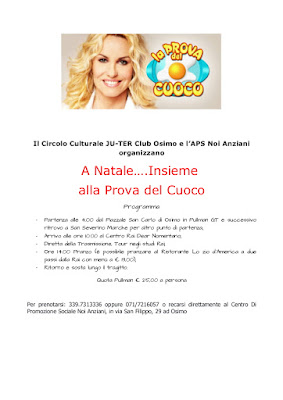 IL CIRCOLO CULTURALE JU-TER CLUB OSIMO insieme all'APS Noi Anziani OSPITI DI ANTONELLA CLERICI ALLA PROVA DEL CUOCO PER LA PUNTATA DI NATALE – LE INFO PER CHI VORRA’ UNIRSI.